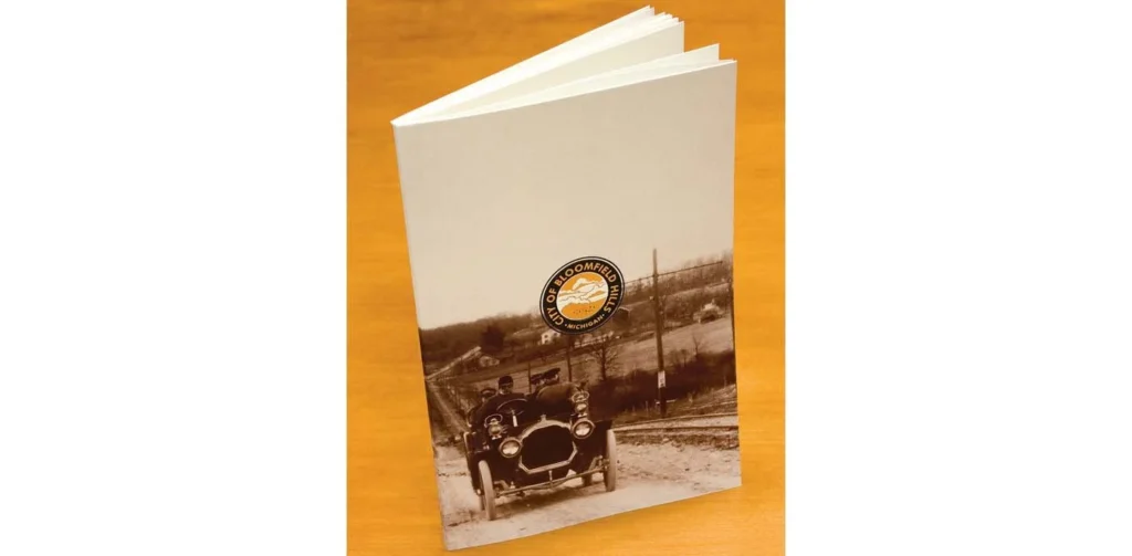 Kay Elizabeth conceived, designed and produced a book to celebrate the City of Bloomfield Hills’ 75th anniversary. Using a vintage, sepia toned photograph of early century driving enthusiasts cruising up the wide open hills of Woodward Avenue, and a foil embossed logo on the cover, the entire booklet reflects the rich history of the City. Kay Elizabeth also designed an accompanying calendar with each month highlighting this historic year. The Brophy family received a “Key to the City” from Bloomfield Hills Mayor Pat Hardy in honor of this dedication.