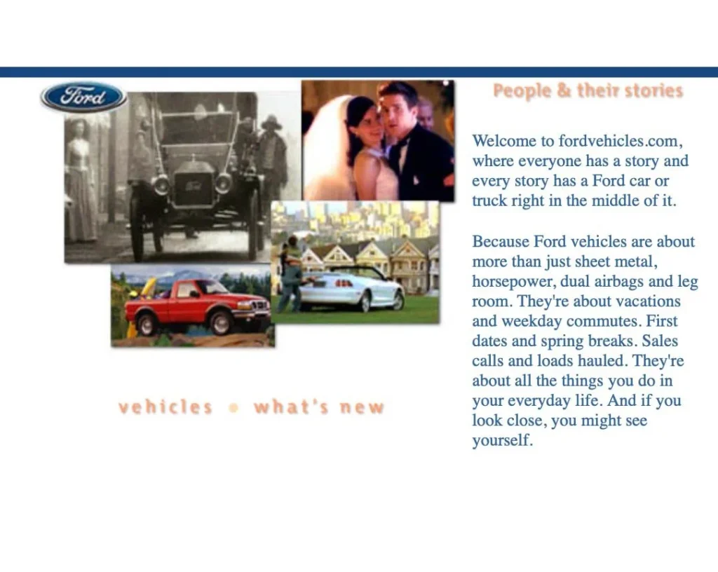 Kay Elizabeth joined the newly formed “New Media Group” at J. Walter Thompson in Detroit as one of the original art directors forging new territory for Ford Motor Company in digital marketing and website design. Kay Elizabeth worked with a team to develop a “Stories” theme for the Ford Vehicles Website and was responsible for designing individual vehicle websites, along with creating digital ads for Ford on the CBS website during the 1998 Winter Olympics. Her ads were directly responsible for driving traffic to the Ford Vehicles website resulting in increased revenue.