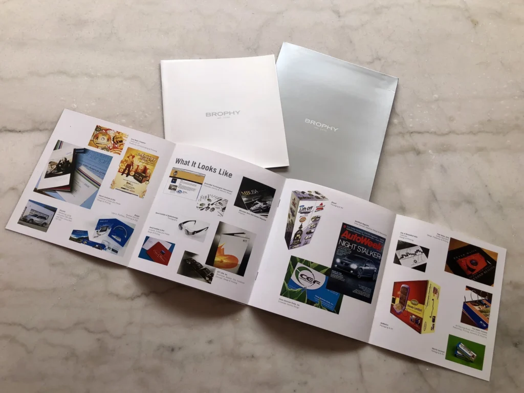 Kay Elizabeth redesigned Brophy’s Corporate Identity a second time, incorporating a clean, minimalist look for business cards, a brochure, ads, marketing materials and signage.